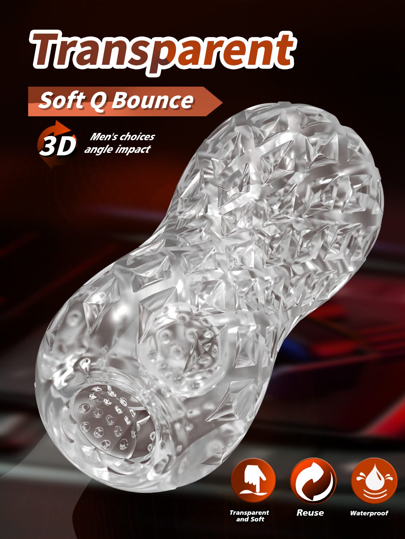Reusable Transparent TPE Male Masturbator Cup with Unique Textured Design | UMPS12