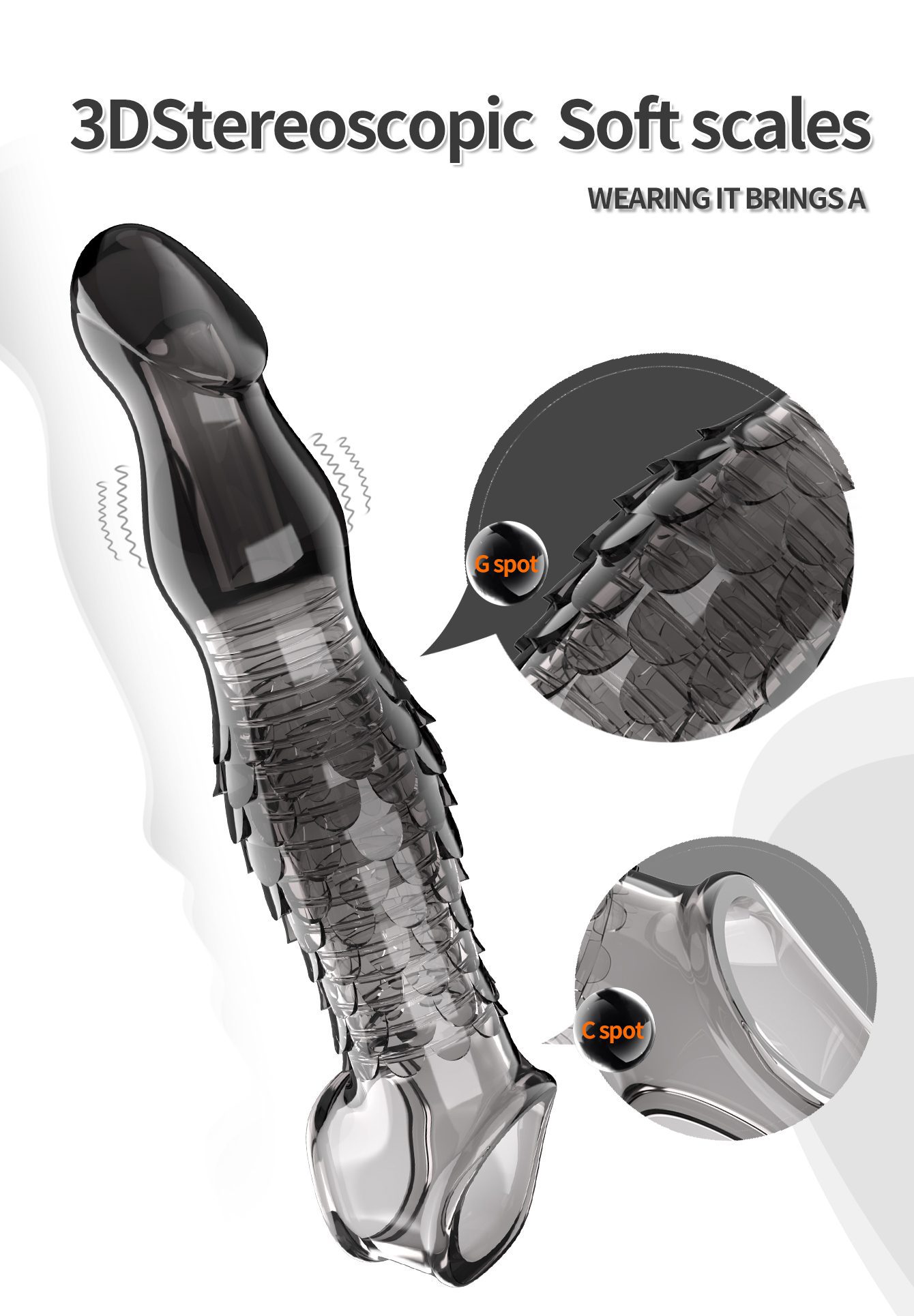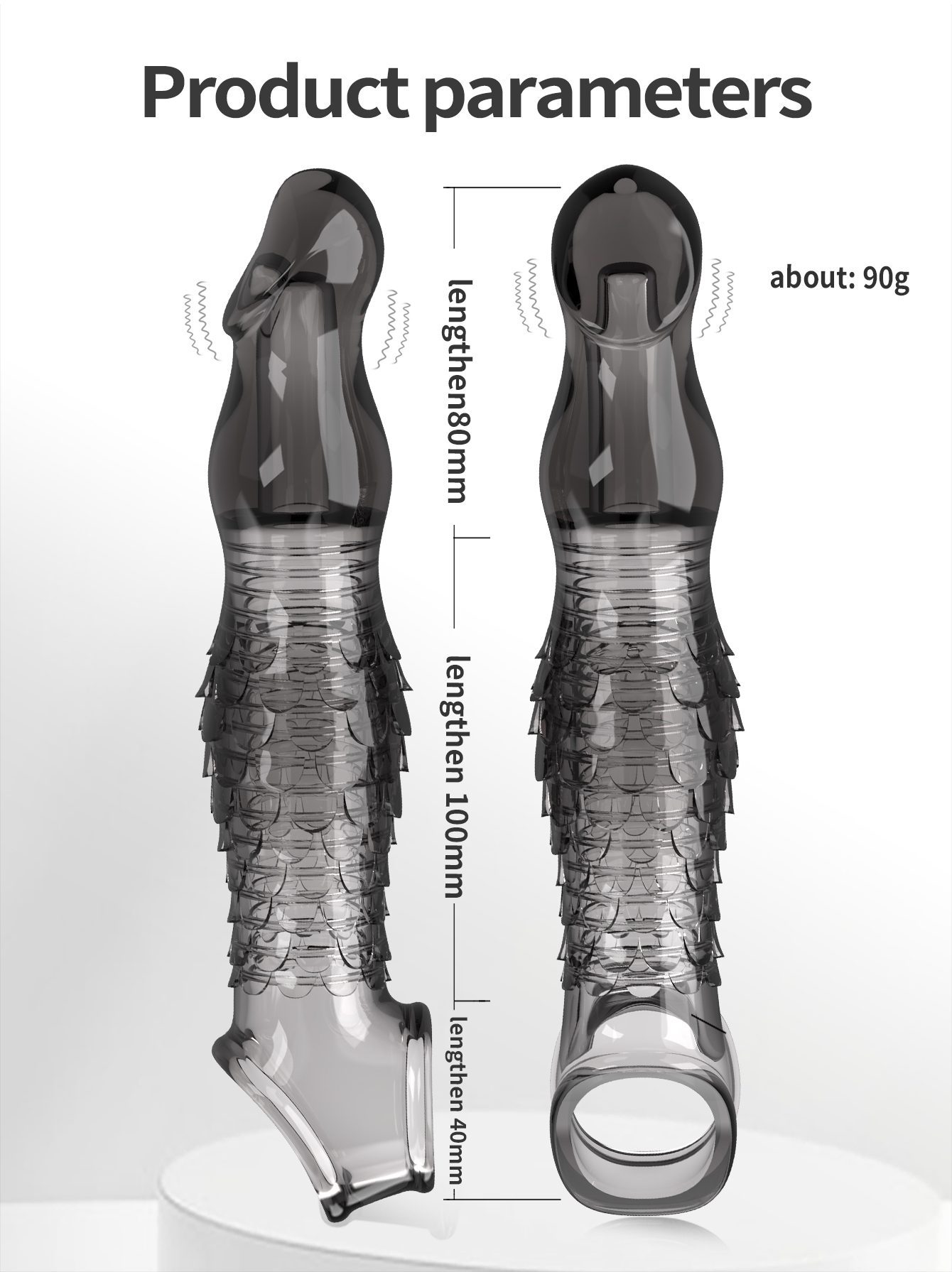 Reusable Black Transparent TPE Penis Sleeve with Scaly Texture | UMPS9B